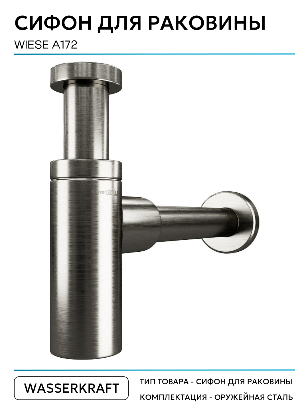 Купить Сифон для раковины WasserKRAFT Wiese A172 Оружейная сталь латунь серый с доставкой по всей России. Сифон для раковины WasserKRAFT Wiese A172 Оружейная сталь латунь серый: сравнение цен, характеристики, фото, актуальное наличие и цены.