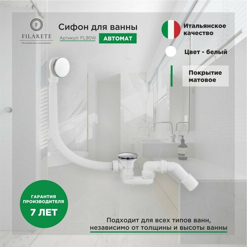 Сифон для ванны автоматический FILARETE FL90 (Белый) - это современное и функциональное решение для обеспечения безопасности и удобства использования вашей ванны.