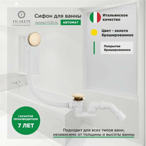 Сифон для ванны автоматический FILARETE FL90 (золотой брашированный) - это современное и функциональное решение для обеспечения безопасности и удобства использования ванной комнаты.