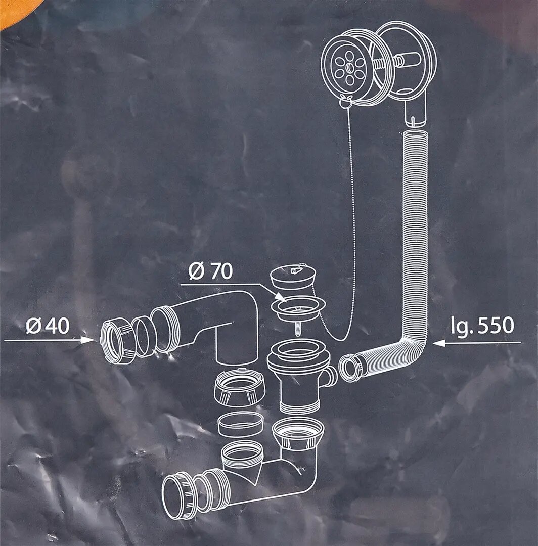 встраиваемый сифон, выпуск, сифон, слив-перелив