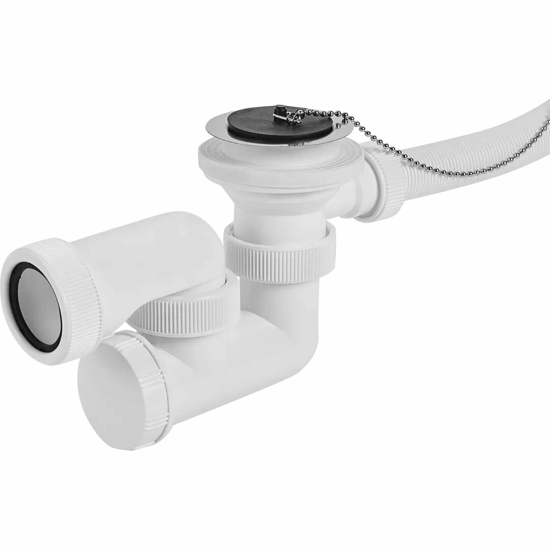 Сифон для мойки Equation d 90 мм с выпуском переливом и отводом для стиральной машины