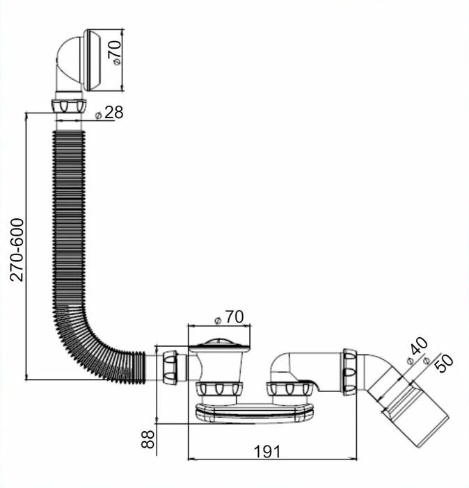 Сифон для ванны и глубокого поддона прямоточный с переливом и гибким соединением d40х 40/50; 400мм: сравнение цен, характеристики, фото, актуальное наличие и цены.