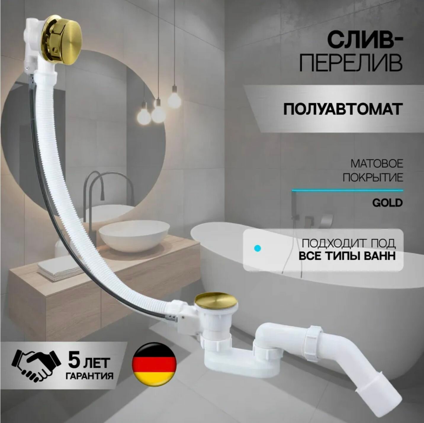 Купить Сифон для ванны полуавтомат, универсальный, матовое золото с доставкой по всей России. Сифон для ванны полуавтомат, универсальный, матовое золото: сравнение цен, характеристики, фото, актуальное наличие и цены.