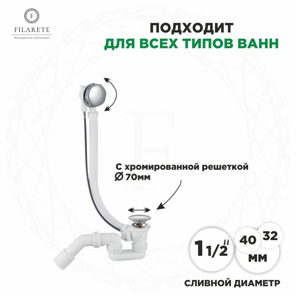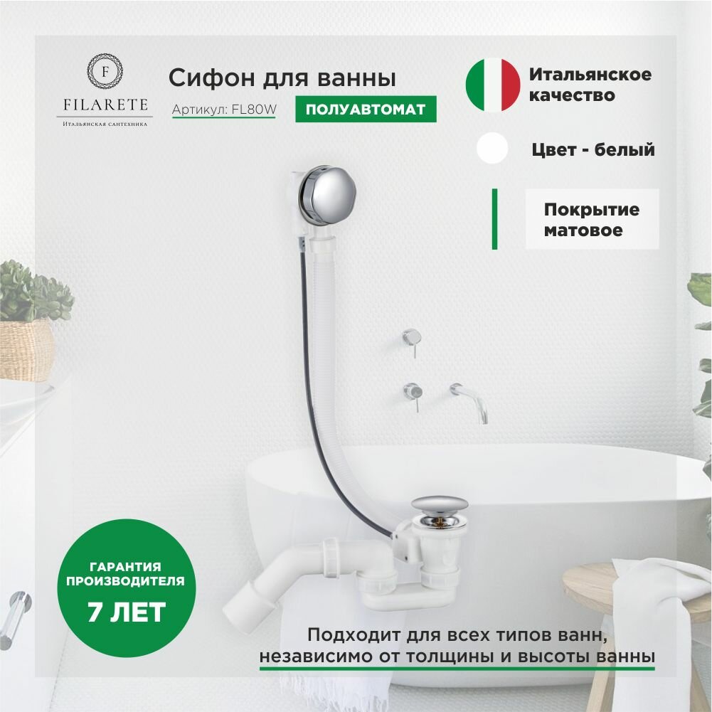 Сифон для ванны полуавтоматический FILARETE FL80 (Белый) - это высококачественный продукт, который сочетает в себе функциональность и эстетику.