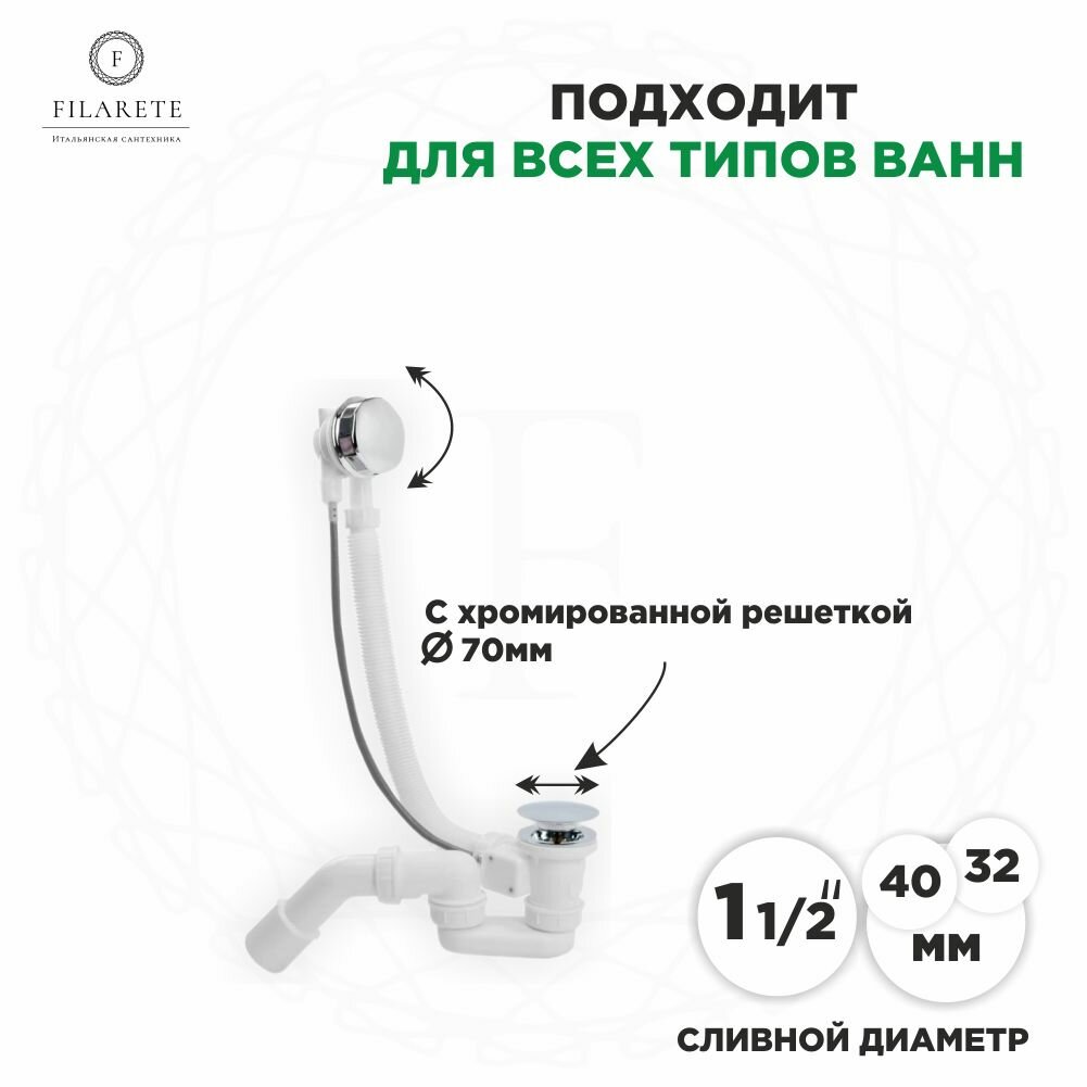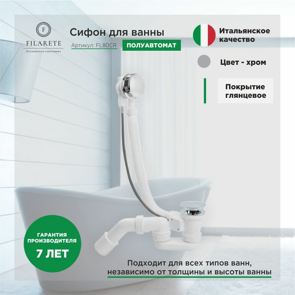 Сифон для ванны полуавтоматический FILARETE FL80 (Хром) - это высококачественный продукт, который обеспечивает надежную работу и удобство использования.