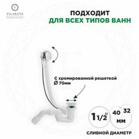 Сифон подходит для ванн с отверстием слива от 40 до 68 мм.