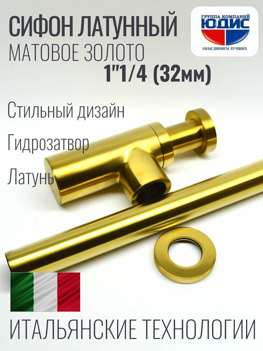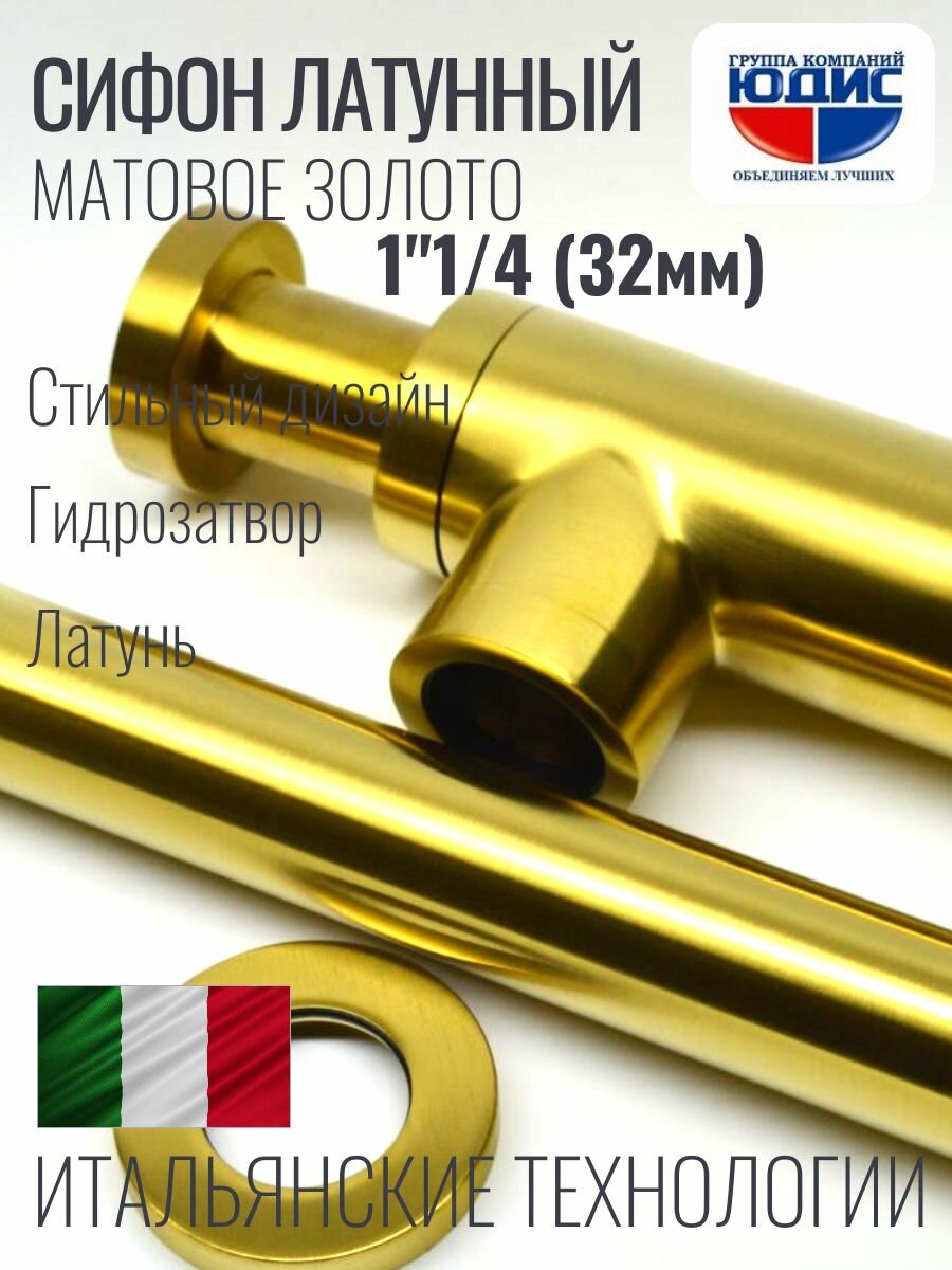 Купить Сифон круглый для тюльпана и умывальника (раковины) 1 1/4″ х 32 мм , цвет матовое золото юдис с доставкой по всей России.