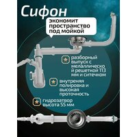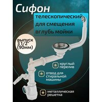 Сифон с круглым переливом для мойки телескопический 3.1/2″, отводом к стиральной машине «Aquant». B0241-17-MR: сравнение цен, характеристики, фото, актуальное наличие и цены.