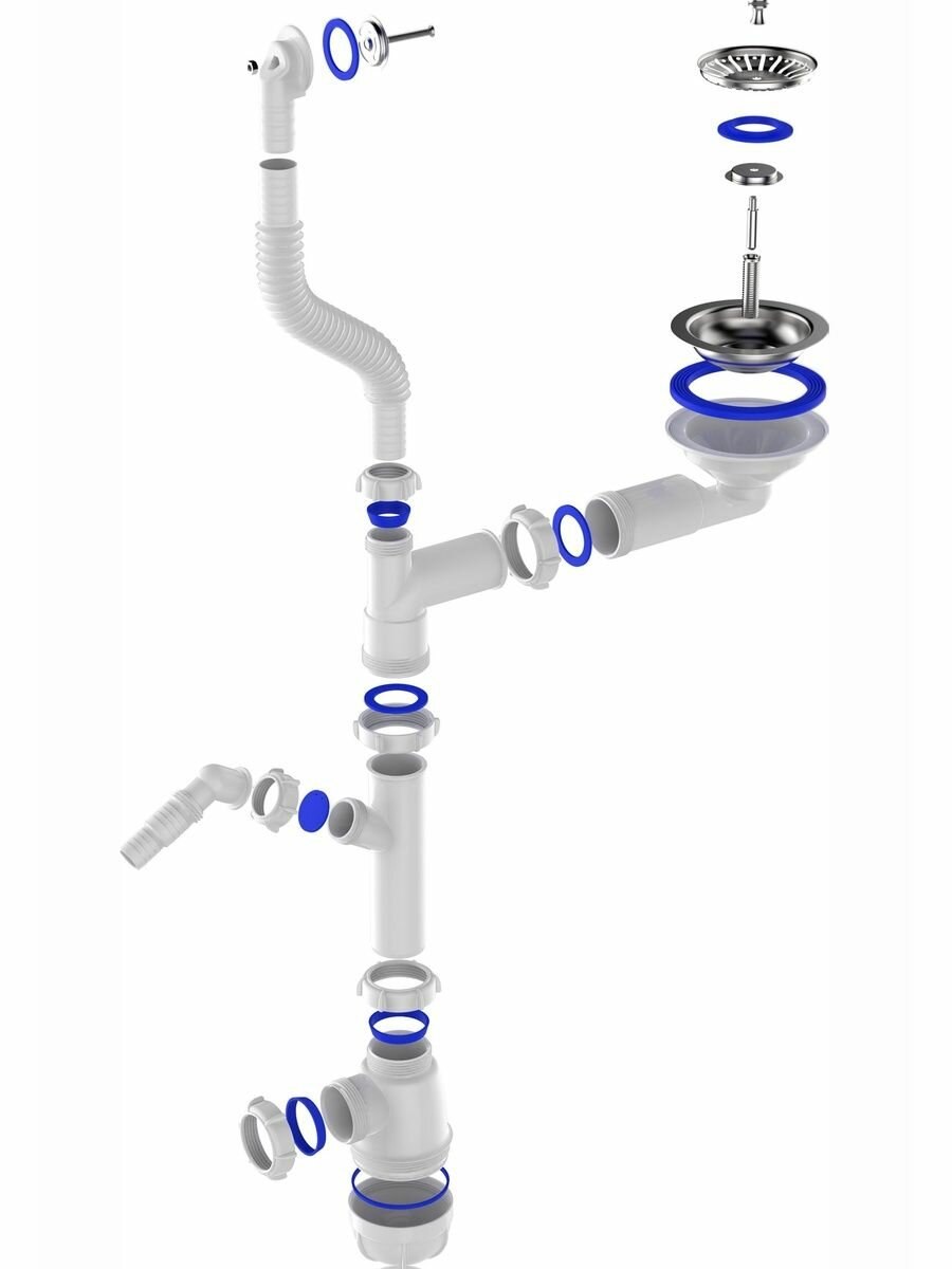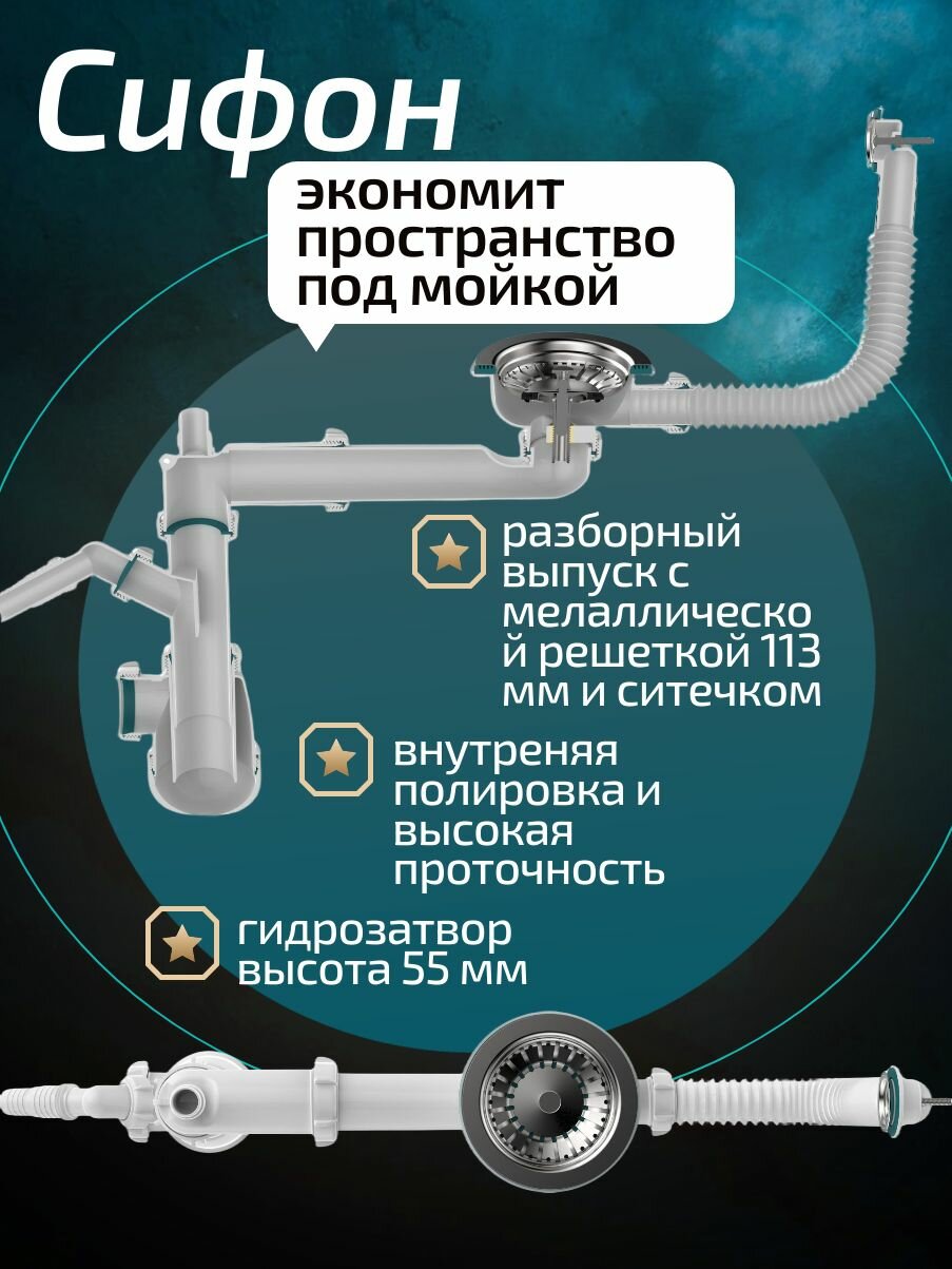 Купить Сифон с круглым переливом для мойки телескопический 3.1/2″, отводом к стиральной машине «Aquant». B0241-17-MR с доставкой по всей России.