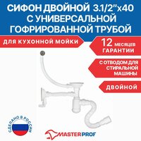 Сифон для кухни 3.1/2″х40 двойн. Универс.(нерж. чаш,2 перел, с/без отв. для стир. маш) с г. т. 40х40/50: сравнение цен, характеристики, фото, актуальное наличие и цены.
