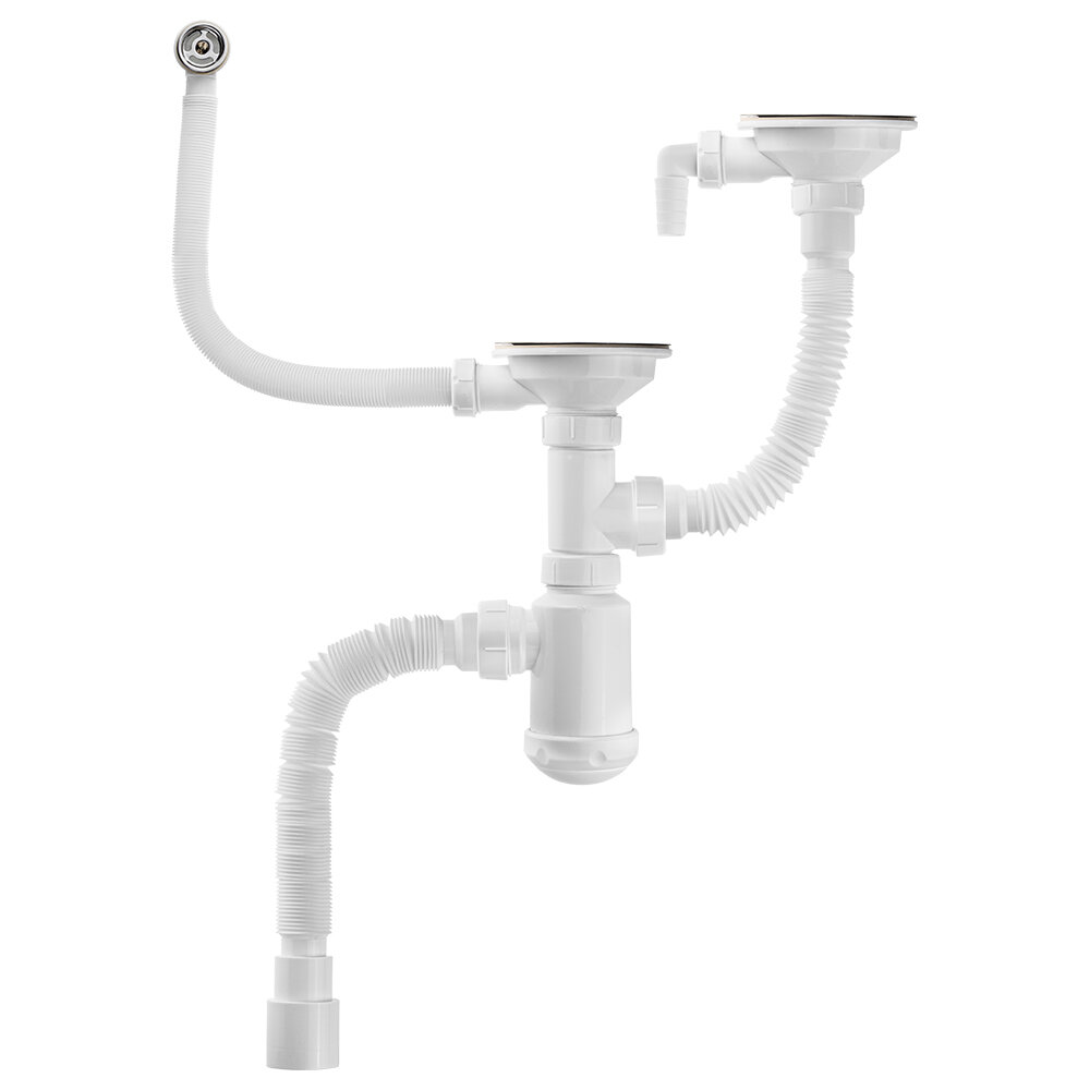 Купить Сифон для кухни 3.1/2″х40 двойн. Универс.(нерж. чаш,2 перел, с/без отв. для стир. маш) с г. т. 40х40/50 с доставкой по всей России.