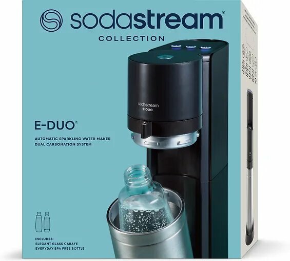 E-DUO — это электрическое устройство для газирования, которое позволяет газировать как стеклянные, так и пластиковые бутылки простым нажатием кнопки. В комплект входит стильная стеклянная бутылка, которую можно поставить на обеденный стол, а также пластиковая бутылка, которую удобно носить с собой. Обе бутылки можно стирать в машине, поэтому за ними легко ухаживать.