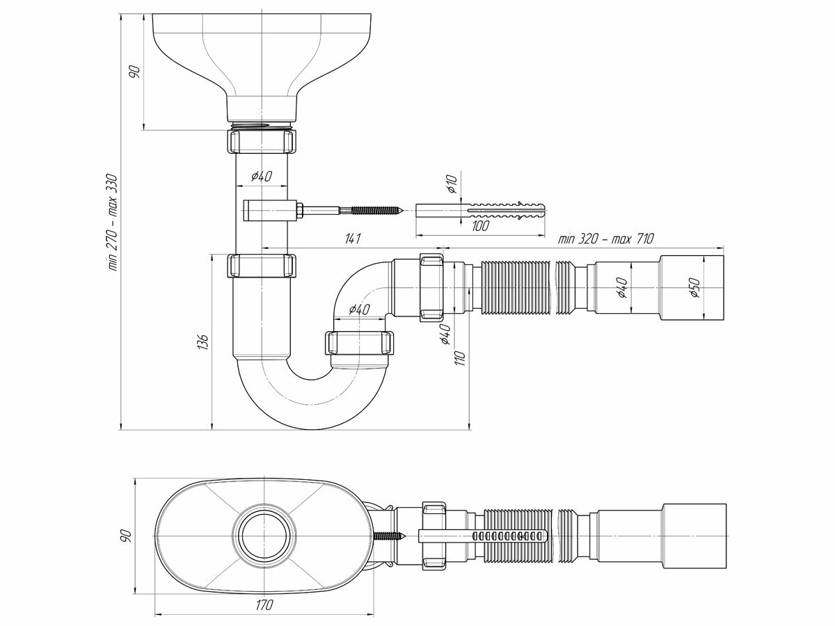 Сифон трубный с разрывом струи 1 1/2’x40 с гофрой 40х40/50 выпуск с воронкой АНИ Пласт DR0115: сравнение цен, характеристики, фото, актуальное наличие и цены.