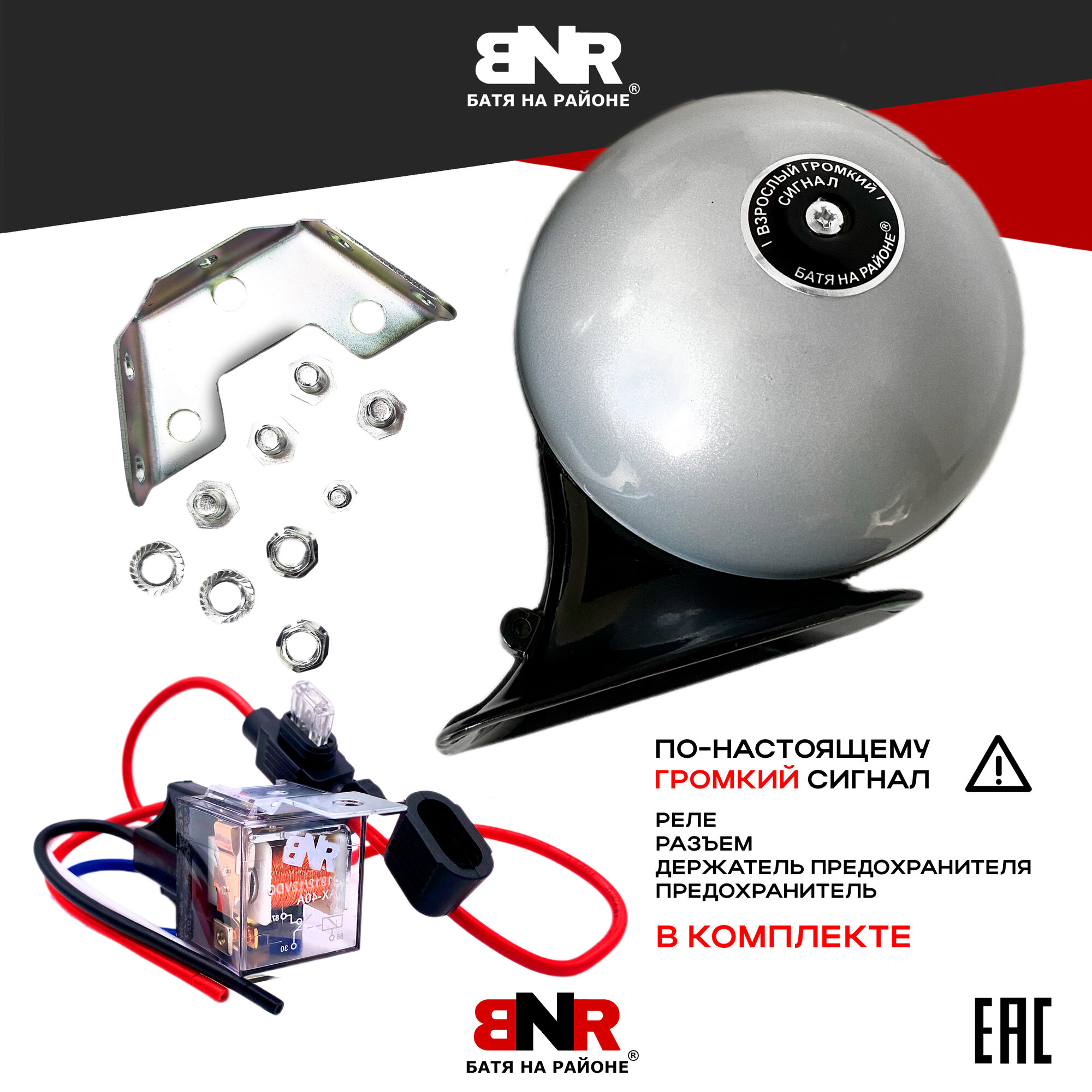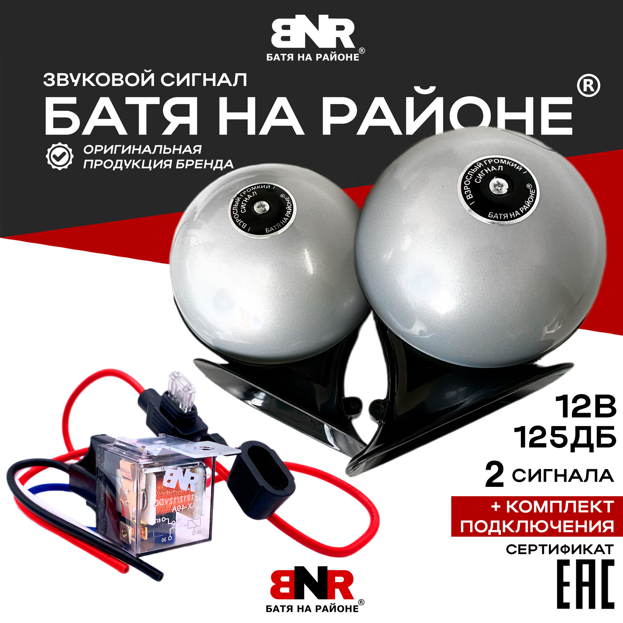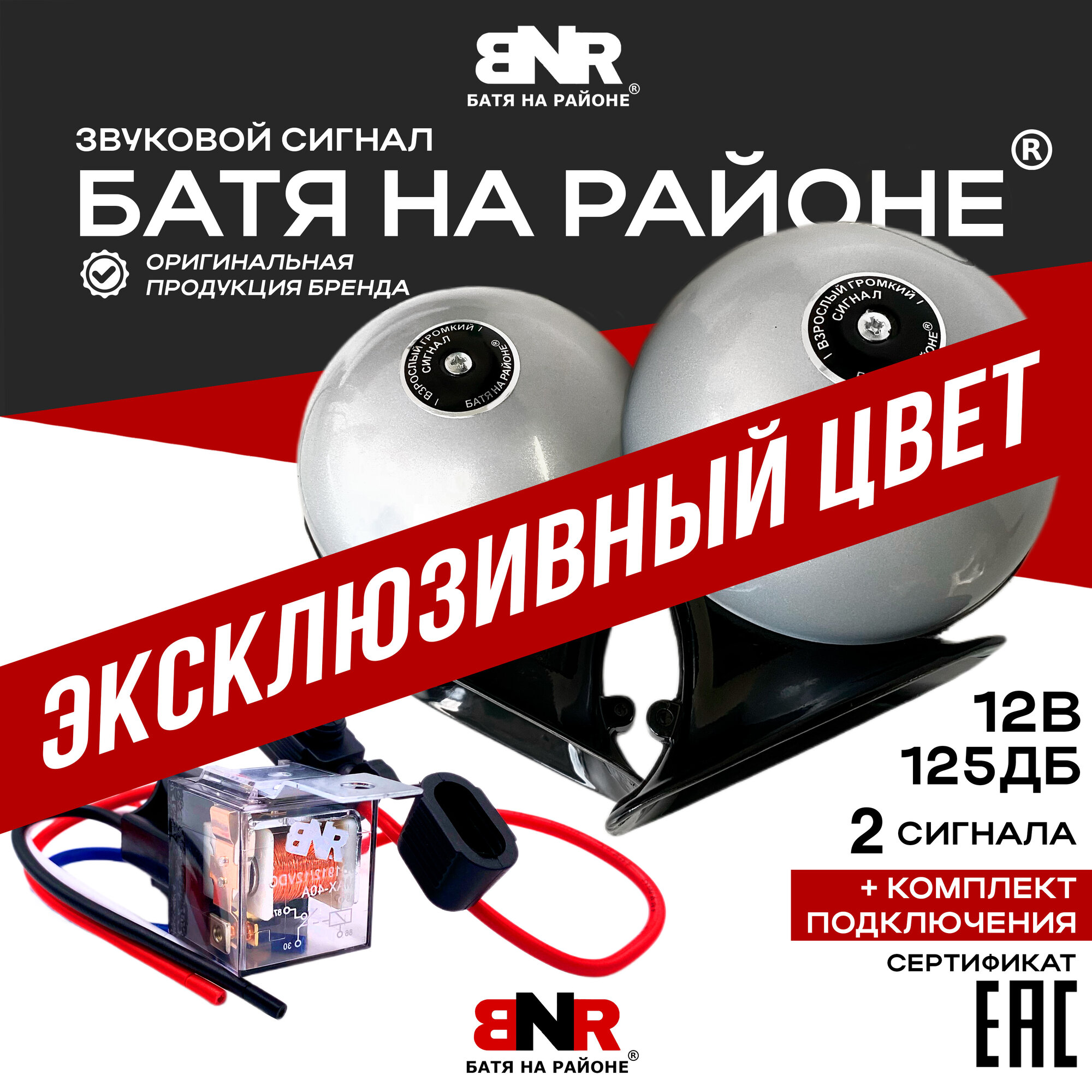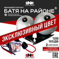 Купить Сигнал Батя на районе 12В Серый Перламутр + Комплект подключения/ Легендарный громкий сигнал для авто / Комплект 2 сигнала с доставкой по всей России.