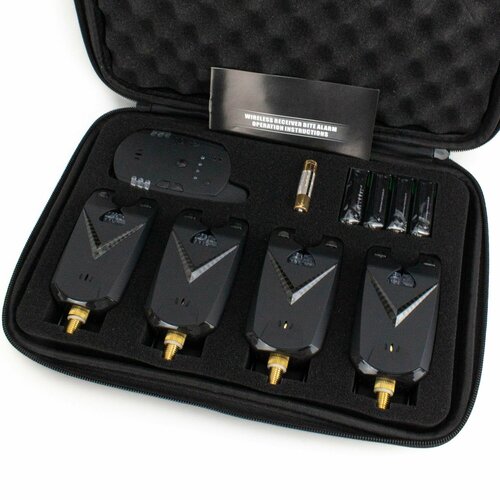 Сигнализатор поклевки звуковой с индикаторами - это идеальное решение для тех, кто хочет быть всегда в курсе событий на рыбалке. В комплект входит 5 единиц: 4 сигнализатора и пейджер.