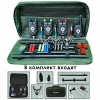 В комплекте имеется мягкий удобный кейс для хранения и переноски. Описание: Электронный сигнализатор поклевки с пейджером — незаменимый набор для ночной ловли карпа и донной рыбалки. Звуковой и световой индикатор моментально реагируют на сигналы клева, независимо от вида рыбной ловли: карповая или фидерная. Сигнализатор контролирует 2, 3 , 4 , 5 , 6 рыболовные удочки одновременно. Интересует вас донка или фидер – неважно. У нас есть любые рыбацкие снасти.