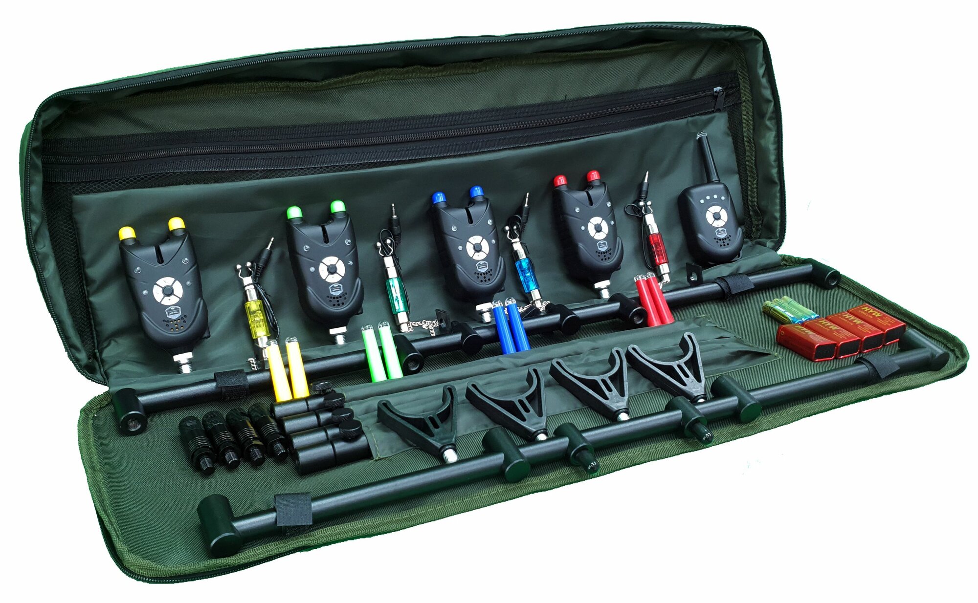В комплекте имеется мягкий удобный кейс для хранения и переноски. Описание: Электронный сигнализатор поклевки с пейджером — незаменимый набор для ночной ловли карпа и донной рыбалки. Звуковой и световой индикатор моментально реагируют на сигналы клева, независимо от вида рыбной ловли: карповая или фидерная. Сигнализатор контролирует 2, 3 , 4 , 5 , 6 рыболовные удочки одновременно. Интересует вас донка или фидер – неважно. У нас есть любые рыбацкие снасти.
