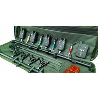 В комплекте имеется мягкий удобный кейс для хранения и переноски, который защищает лучше пластикового и при этом сам не ломается. Пейджер и сигнализатор имеют: изменение тональности звукового сигнала относительно направления поклевки(от берега или к берегу) и изменение цвета светового индикатора на них и сигнализируют о поклевке еще 20 сек. после ее осуществления.