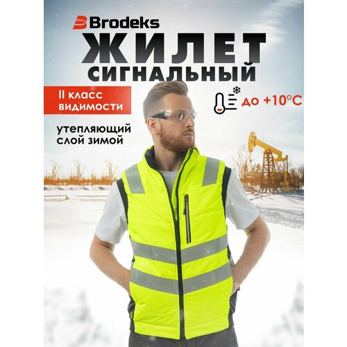 Утеплённый жилет 2 класса видимости для работы на улице и в прохладных помещениях, когда необходима повышенная заметность. Сшит из мембранной ткани с водоотталкивающей отделкой, утеплён компактным материалом с гипоаллергенными свойствами. Жилет застёгивается на молнию. Сверху на воротнике предусмотрен небольшой клапан, предотвращающий соприкосновение подбородка или шеи с застёжкой. Высокий воротник с подкладкой из мягкого микрофлиса создаёт уют и дополнительно защищает от ветра. Спинка жилета удлинённая, что уберегает поясницу от продувания. Проймы и низ изделия оформлены трикотажными вставками. Это обеспечивает более плотное прилегание. В жилете есть два наружных кармана для рук и два внутренних кармана для важных мелочей. Также предусмотрен нагрудный карман под молнией. Флуоресцентный цвет и широкие светоотражающие полосы на поясе и плечах гарантируют повышенную заметность в тёмное время суток или на неосвещаемых объектах. Жилет имеет 2 класс видимости. Подходит сотрудникам дорожных и логистических служб, а также специалистам нефтегазовой промышленности. Мембранная ткань 3000/3000 с водоотталкивающей отделкой. Утеплитель Слайтекс 150 гр, с гипоаллергенными свойствами.