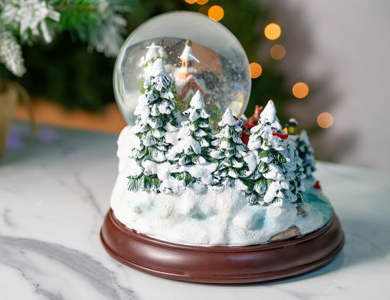 Купить Музыкальная композиция со снежным шаром и подсветкой Зимняя Мечта 23*20 см с доставкой по всей России.