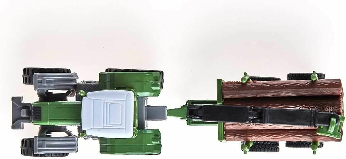 SIKU Трактор Fendt с лесным прицепом, металл/пластик, зеленый, вкл. 6 стволов, многофункциональный