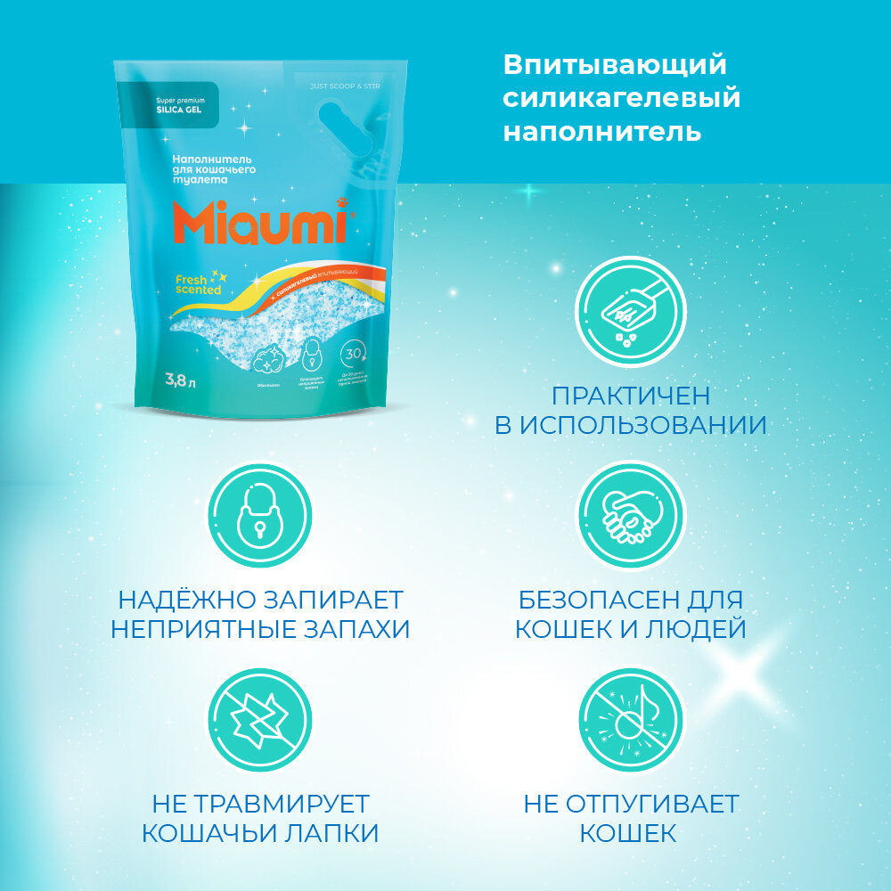 Купить Силикагелевый наполнитель Miaumi Silica Gel Fresh Scented для кошачьего туалета с ароматом свежести 3,8л (1.69кг) с доставкой по всей России. Силикагелевый наполнитель Miaumi Silica Gel Fresh Scented для кошачьего туалета с ароматом свежести 3,8л (1.69кг): сравнение цен, характеристики, фото, актуальное наличие и цены.