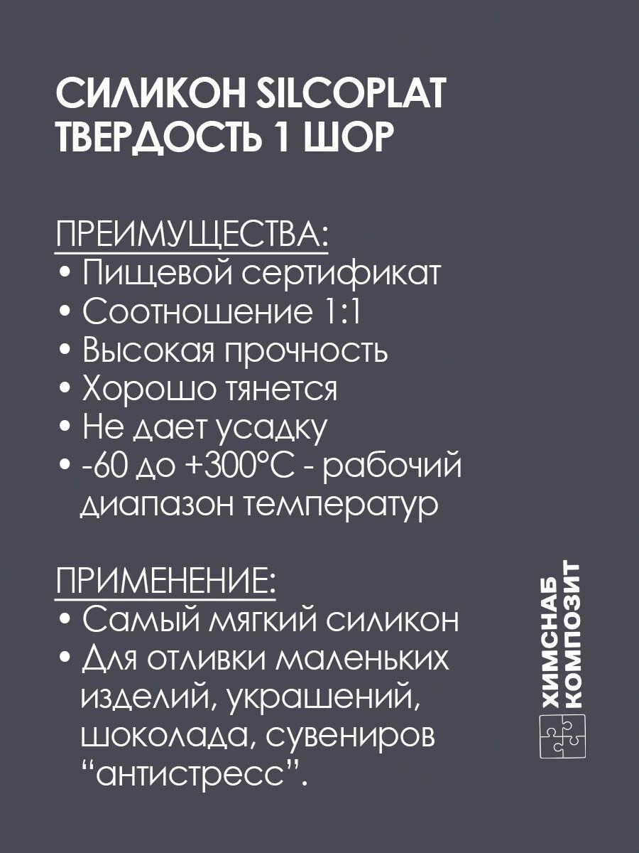 Силикон жидкий для форм на платине, 1 Шор, 1 SilcoPlat, 2 кг, имеет пищевой сертификат: сравнение цен, характеристики, фото, актуальное наличие и цены.