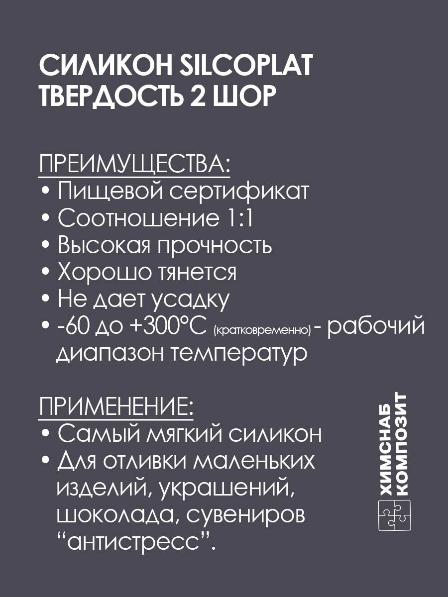 Силикон жидкий для форм на платине, 2 Шор двухкомпонентный 2 кг (1+1) 2 SilcoPlat: сравнение цен, характеристики, фото, актуальное наличие и цены.