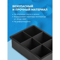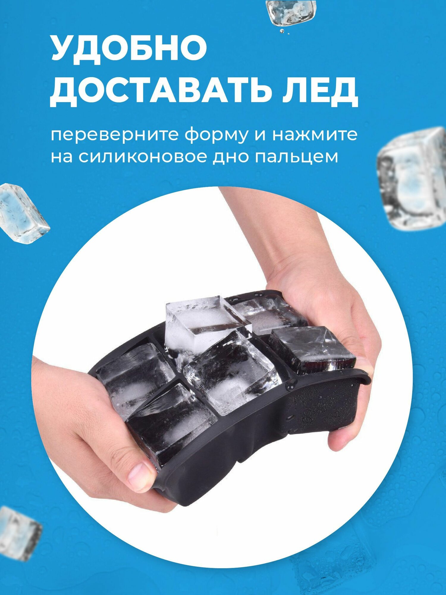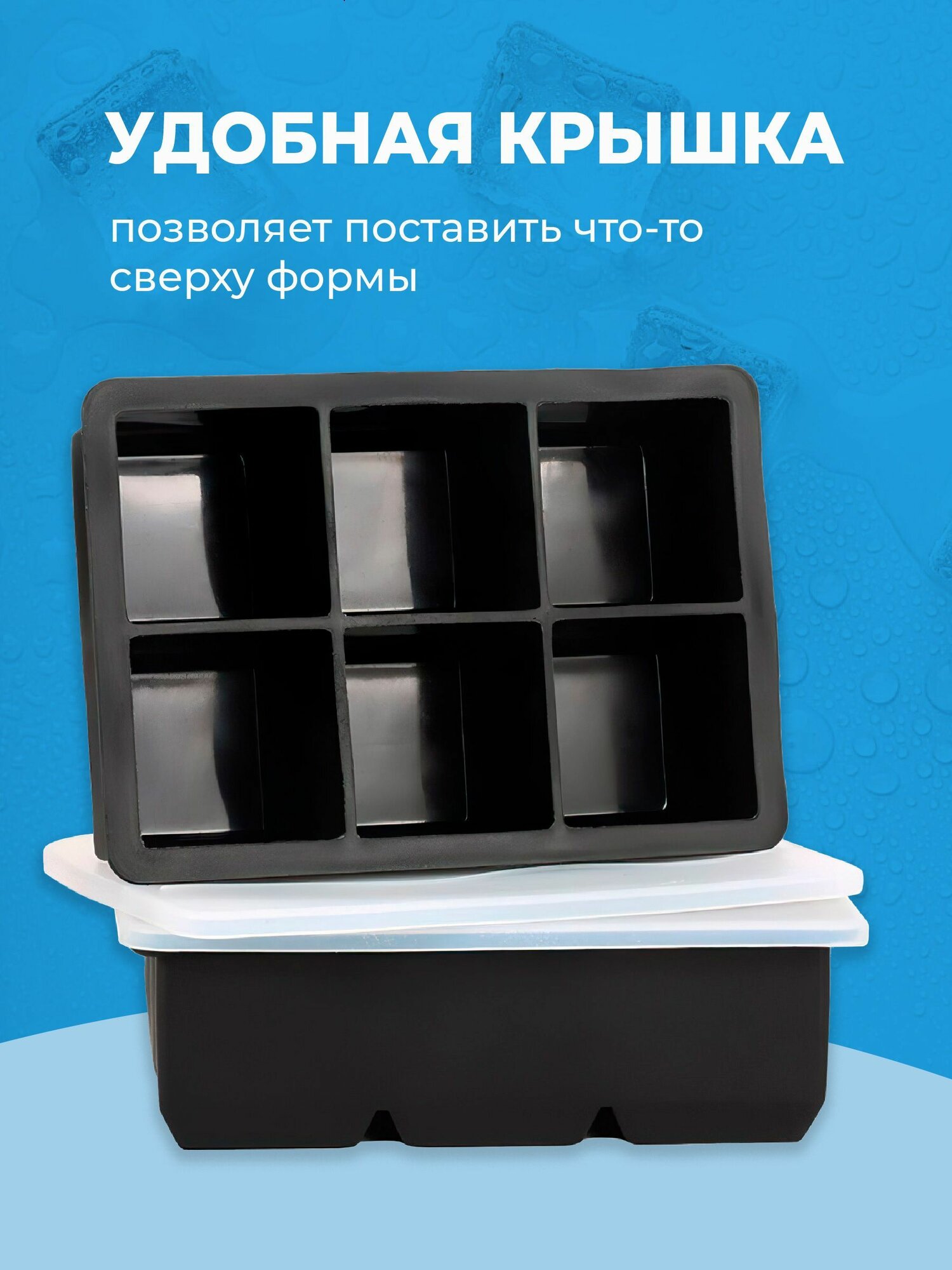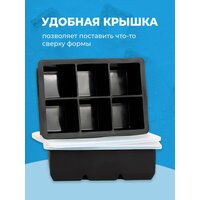 В нашей силиконовой форме для льда можно заморозить что угодно: воду, чтобы использовать фруктовый лед для коктейлей и разных напитков, шоколад, карамель, соусы, овощные добавки. Кубики получаются ровными со всех сторон, легко достаются из формы, благодаря мягким стенкам формочки. В одной форме 6 кубиков, размером 4,5х4,5х4,5 см каждый. Общий размер формочки: 16,5 см х 11,5 см х 4,5 см. В комплекте 2 штуки! Форма компактная, занимает минимум места в морозилке. Большой кубик позволяет добавлять ко льду листья мяты, кусочки цитрусовых или ягод, чтобы не только охлаждать напиток, но и эффектно выглядеть в стакане или пунше. Замораживайте с помощью контейнера аккуратные ледяные кусочки и используйте их для охлаждения напитков, приготовления еды или украшения праздничного стола. Многоразовый лоток идет в комплекте с крышкой, которая накрывает содержимое внутри и позволяет поставить что-то сверху. Контейнер для заморозки изготовлен из высококачественного полипропилена, выдерживает перепады температур от -40 до +240 градусов. Форму можно мыть как вручную, так и в посудомоечной машине — она не деформируется и не трескается со временем. Материал абсолютно безопасный, не впитывает вкусы и запахи. Поэтому большую форму можно надолго оставлять в морозильной камере. Охлаждайте напитки красиво!
