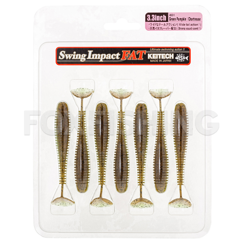 Приманки от Keitech Swing Impact Fat, отличается весьма активной игрой. Достигается это использованием очень мягкого силикона. Увеличивает активность игры и то, что ребристое, утолщенное, червеобразное тело приманки соединено с широкой пяткой хвоста тонкой перемычкой. Поэтому хвост заводится мгновенно и совершает, привлекающие хищника, движения даже при очень медленной проводке. Поперечная ребристость наделяет тело приманки дополнительной парусностью, что улучшает не только подвижность и игру виброхвоста Keitech Swing Impact Fat, но и создает привлекательные звуковые колебания.