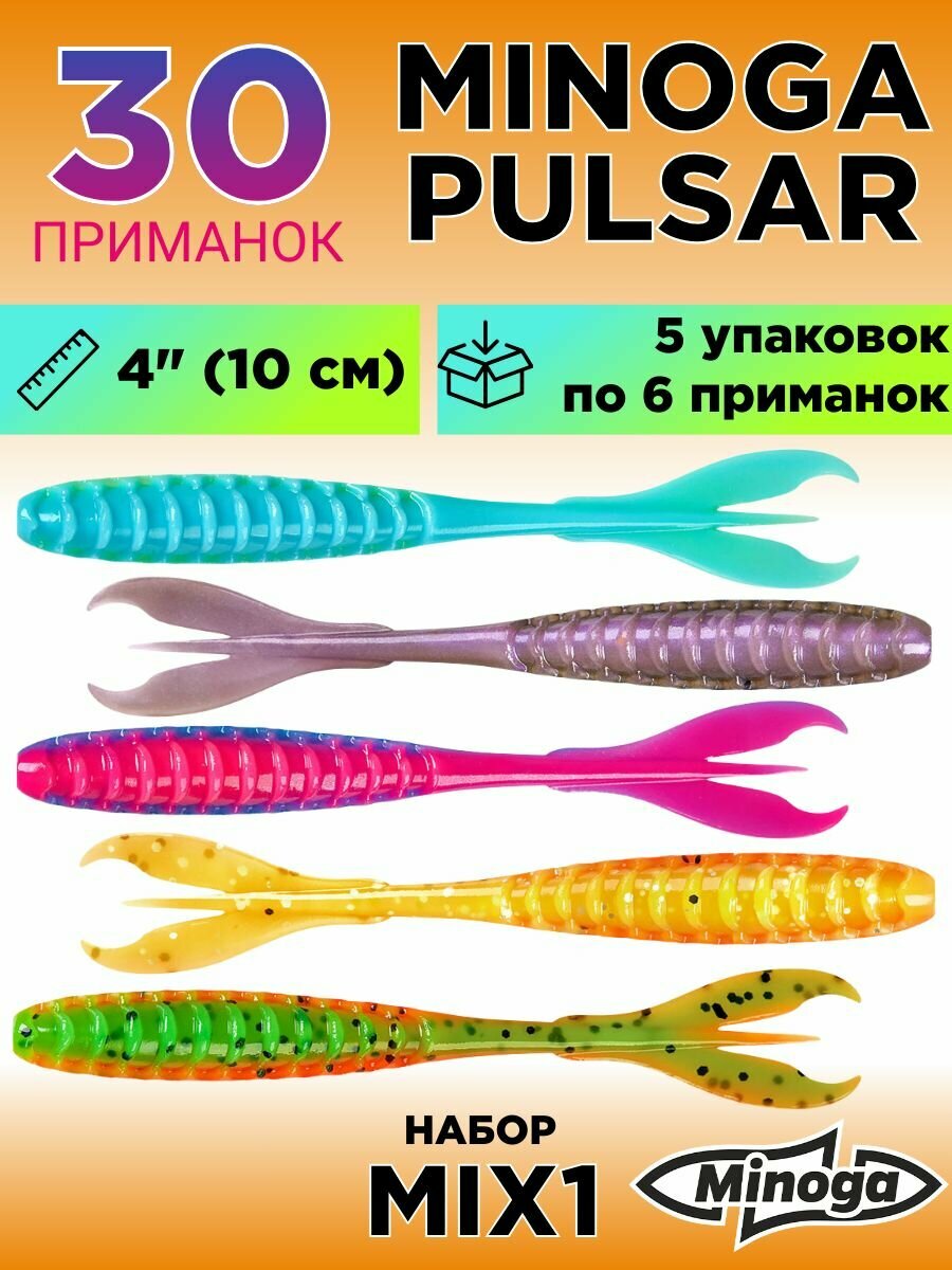 Силиконовая приманка Minoga Pulsar 4″ (набор 5 упаковок по 6 штук) 100мм, цвет MIX1: сравнение цен, характеристики, фото, актуальное наличие и цены.