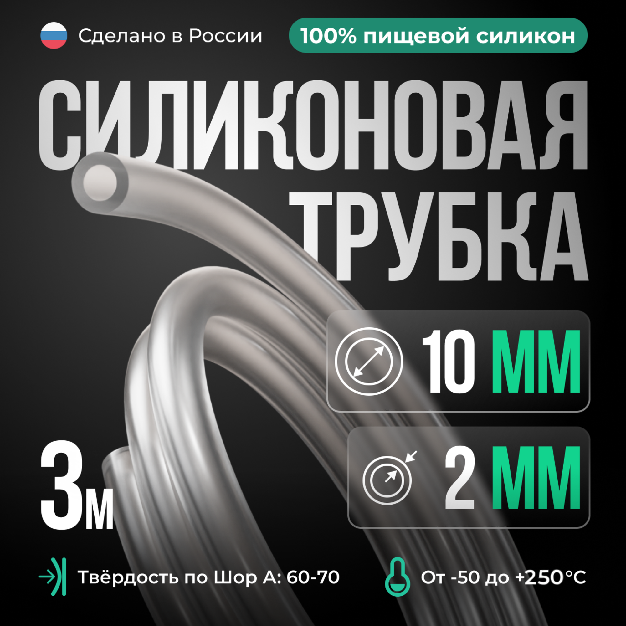 Силиконовая трубка внутренний D10 мм, толщина стенки 2 мм, 3 метра, прозрачный цвет: сравнение цен, характеристики, фото, актуальное наличие и цены.