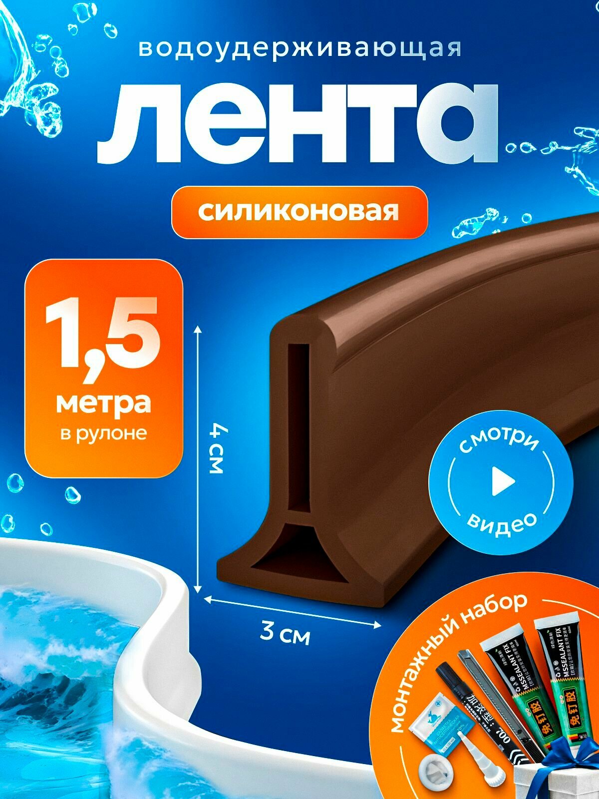 Силиконовая водоудерживающая лента, барьер для душа, силиконовая водоудерживающая лента. Коричневый 1.5 метров: сравнение цен, характеристики, фото, актуальное наличие и цены.