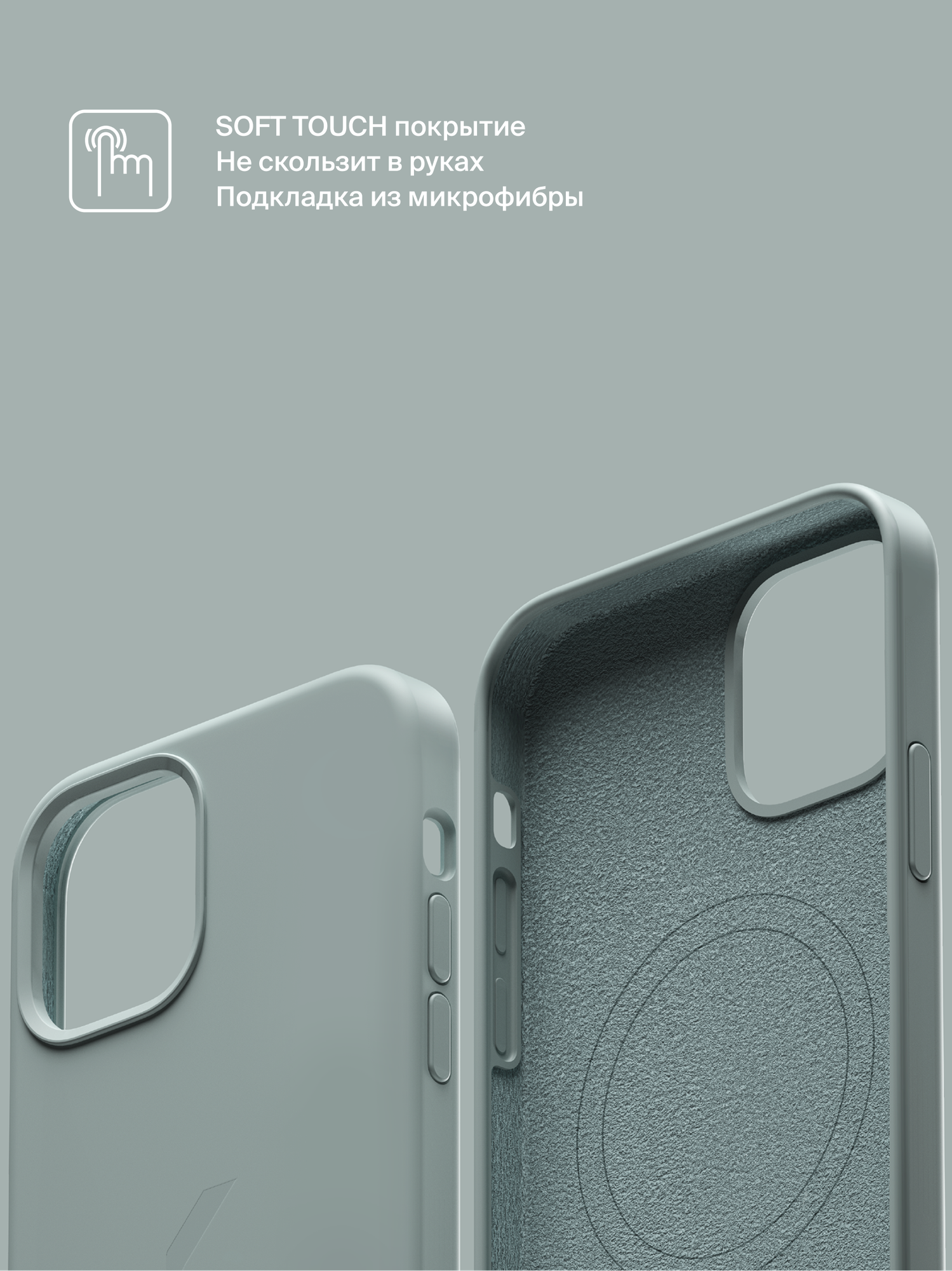 Силиконовый чехол COMMO Shield Case для iPhone 12/12 Pro с поддержкой беспроводной зарядки, Серо-зелёный: сравнение цен, характеристики, фото, актуальное наличие и цены.