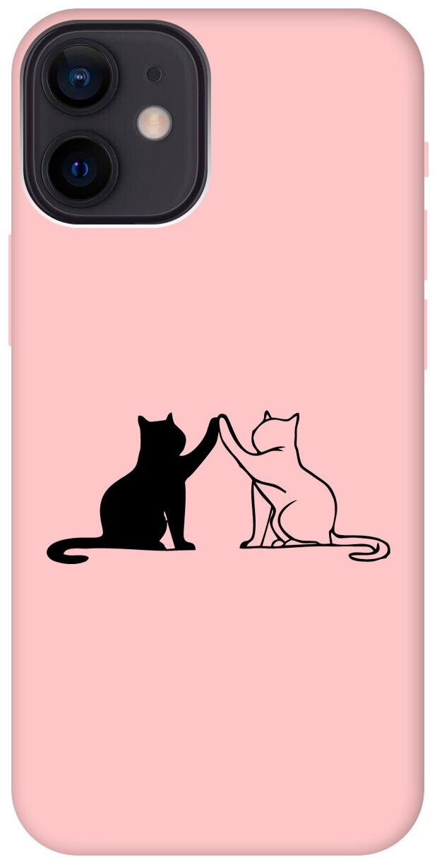 Силиконовый чехол на Apple iPhone 12 Mini / Эпл Айфон 12 мини с рисунком «Cats» Soft Touch розовый