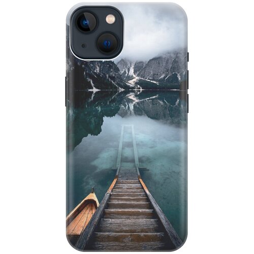 Купить Силиконовый чехол на Apple iPhone 14 / Эпл Айфон 14 с рисунком «Горы, озеро, облака» с доставкой по всей России.