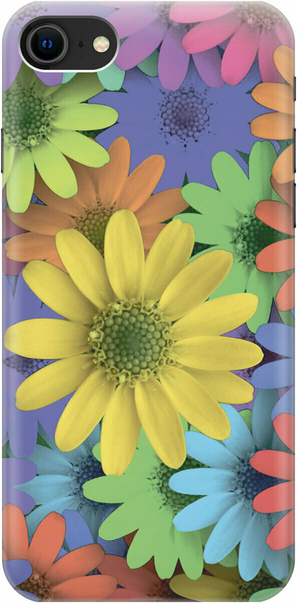 Купить Силиконовый чехол на Apple iPhone SE (2022) / SE (2020) / 8 / 7 / Эпл Айфон СЕ 2022 / СЕ 2020 / 8 / 7 с рисунком «Букет из разнозветных ромашек» с доставкой по всей России.