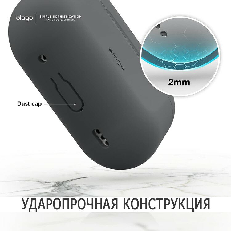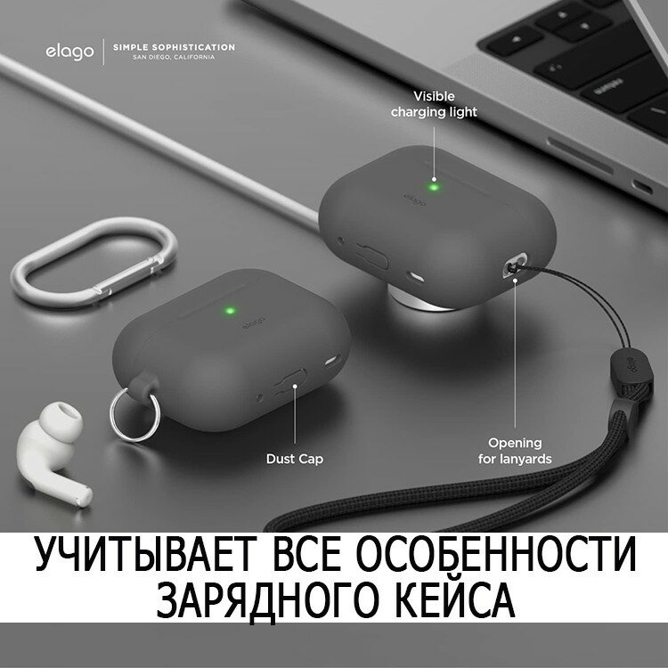 Силиконовый чехол с карабином для AirPods Pro 2 (all), Elago Dark Grey: сравнение цен, характеристики, фото, актуальное наличие и цены.