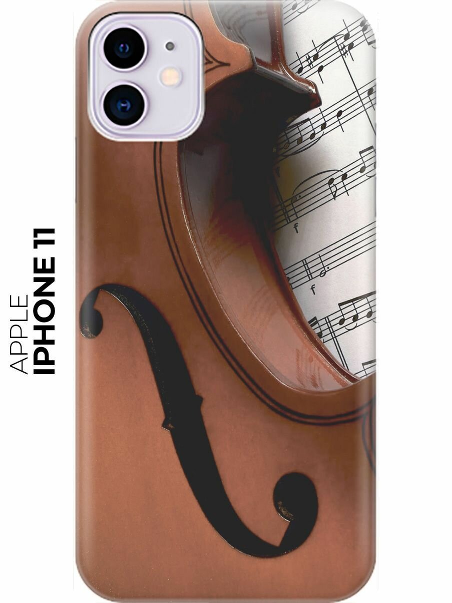Купить Силиконовый чехол на Apple iPhone 11 / Эпл Айфон 11 с рисунком «Скрипка и ноты» с доставкой по всей России.