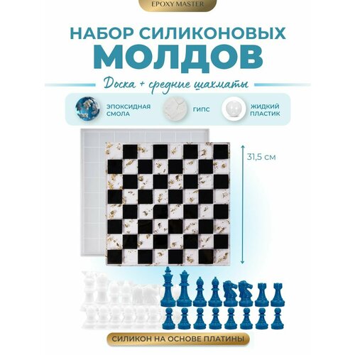 Купить Силиконовый молд для эпоксидной смолы EPOXYMASTER Шахматная доска + шахматные фигуры, 31,5х31,5см с доставкой по всей России. Силиконовый молд для эпоксидной смолы EPOXYMASTER Шахматная доска + шахматные фигуры, 31,5х31,5см: сравнение цен, характеристики, фото, актуальное наличие и цены.