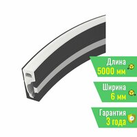 Цельнолитой силиконовый гибкий профиль с УФ-защитой, верхняя часть - белая матовая, стороны - черные матовые. Габаритные размеры профиля составляют 5000 мм в длину, 6 мм в ширину и 16 мм в высоту. Горизонтальный изгиб SIDE, минимальный радиус изгиба 30 мм. Угол излучения 150°. Для удобства установки ленты по всей длине профиля протянута нить. Площадка для установки светодиодных лент позволяет использовать ленту шириной от 6 до 8 мм, высотой до 2,9 мм и мощностью до 10 Вт/м. Для установки во влажных помещениях необходима герметизация при помощи двухкомпонентного эпоксидного герметика. Класс пылевлагозащиты – IP65 (при соблюдении технологии герметизации). Этот продукт представляет отличное решение для создания современных световых проектов и обеспечивает надежную и стильную основу для установки светодиодов.