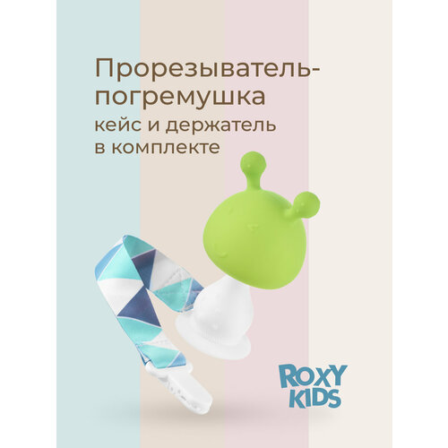 Прорезыватель для зубов MUSHROOM от ROXY-KIDS в форме грибочка безопасно массирует десны двумя ушками разной степени жесткости и снимает неприятные ощущения во время прорезывания зубов. Элементы в форме соска напоминают малышу мамину грудь. Кулачок малыша полностью помещается внутри полусферы грибочка. Ребенок крепко держит прорезыватель в кулачке и отучается от сосания пальца. Благодаря анатомической форме прорезыватель подходит для новорожденных и может выполнять функцию соски. Использование прорезывателя успокаивает малыша, развивает координацию и моторику рук, мелодичная погремушка внутри привлекает внимание и развлекает ребенка. С помощью присоски прорезыватель можно установить на столик или детский стульчик. В комплект входит держатель с надежной запатентованной клипсой, поэтому прорезыватель не упадет и не потеряется. Один конец держателя прикрепляется к прорезывателю, а второй при помощи специальной клипсы пристегивается к одежде ребенка. Держатель выполнен из двух слоев полиэстера, прочно сшитых вместе, поэтому он не износится и не порвется.