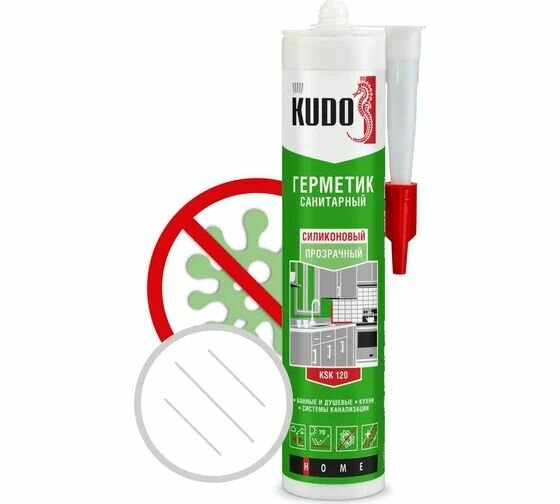 Силиконовый санитарный герметик KUDO (прозрачный, 280 мл) KSK-120 применяется при общих бытовых, ремонтных и строительных работах. Cодержит специальные антисептические добавки, препятствующие образованию плесени и грибков. Идеально подходит для помещений с повышенной влажностью: ванных комнат, душевых кабин, кухонь и для остекления. Применяется для уплотнения соединительных швов вокруг ванн, раковин, бассейнов, герметизации стыков при установке сантехнического оборудования, гидроизоляции поверхностей, заделки швов между плитками. Устойчив к воздействию большинства моющих и чистящих средств, стоек к УФ излучению, атмосферным воздействиям, температурным перепадам и практически любым агрессивным средам.