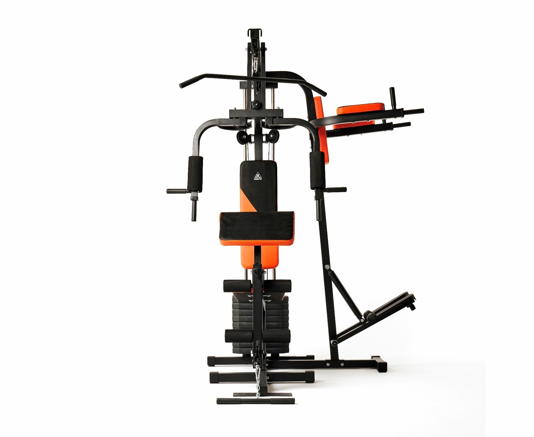 Силовой комплекс DFC из серии HomeGym D7002-60 предназначен для прокачки всех групп мышц: рук и верхнего плечевого пояса, спины, грудных мышц, пресса, ног. Позволяет выполнять силовые упражнения с разным функционалом для наилучшей эффективности тренировки. Сиденье и спинка с плотной обивкой чёрного цвета с оранжевыми вставками зафиксированны для комфортного выполнения упражнений. Парта для бицепса из той же ткани регулируется по высоте на 3 уровня. Степпер с гидроцилиндрами для дополнительной нагрузки. Максимальный вес пользователя — 120 килограмм.