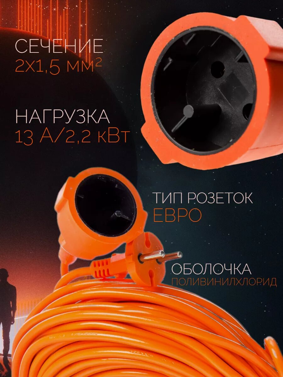 Кабель удлинителя состоит из меди, что обеспечивает высокую проводимость и долговечность. Число/Сечение жил составляет 2x1,5 кв. мм, что гарантирует стабильную работу и безопасность использования.