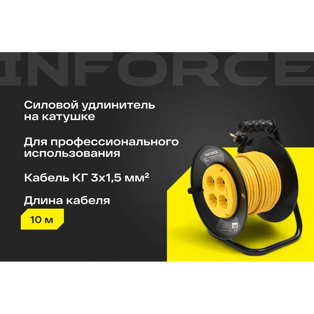 Силовой удлинитель Inforce на катушке 4 гнезда, с/з ПВС 3х1,5 16A 10м IP20 GRANITE ZG 09-15-09: сравнение цен, характеристики, фото, актуальное наличие и цены.
