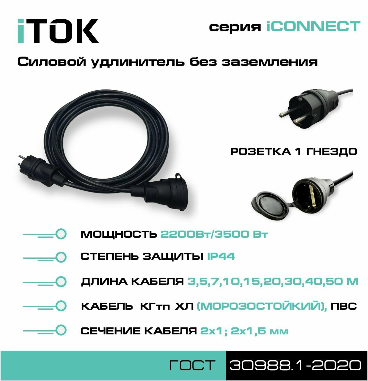 Удлинитель силовой уличный КГтп-ХЛ 2х1 мм 1 розетка IP44 15 м без земли серии iCONNECT iTOK: сравнение цен, характеристики, фото, актуальное наличие и цены.