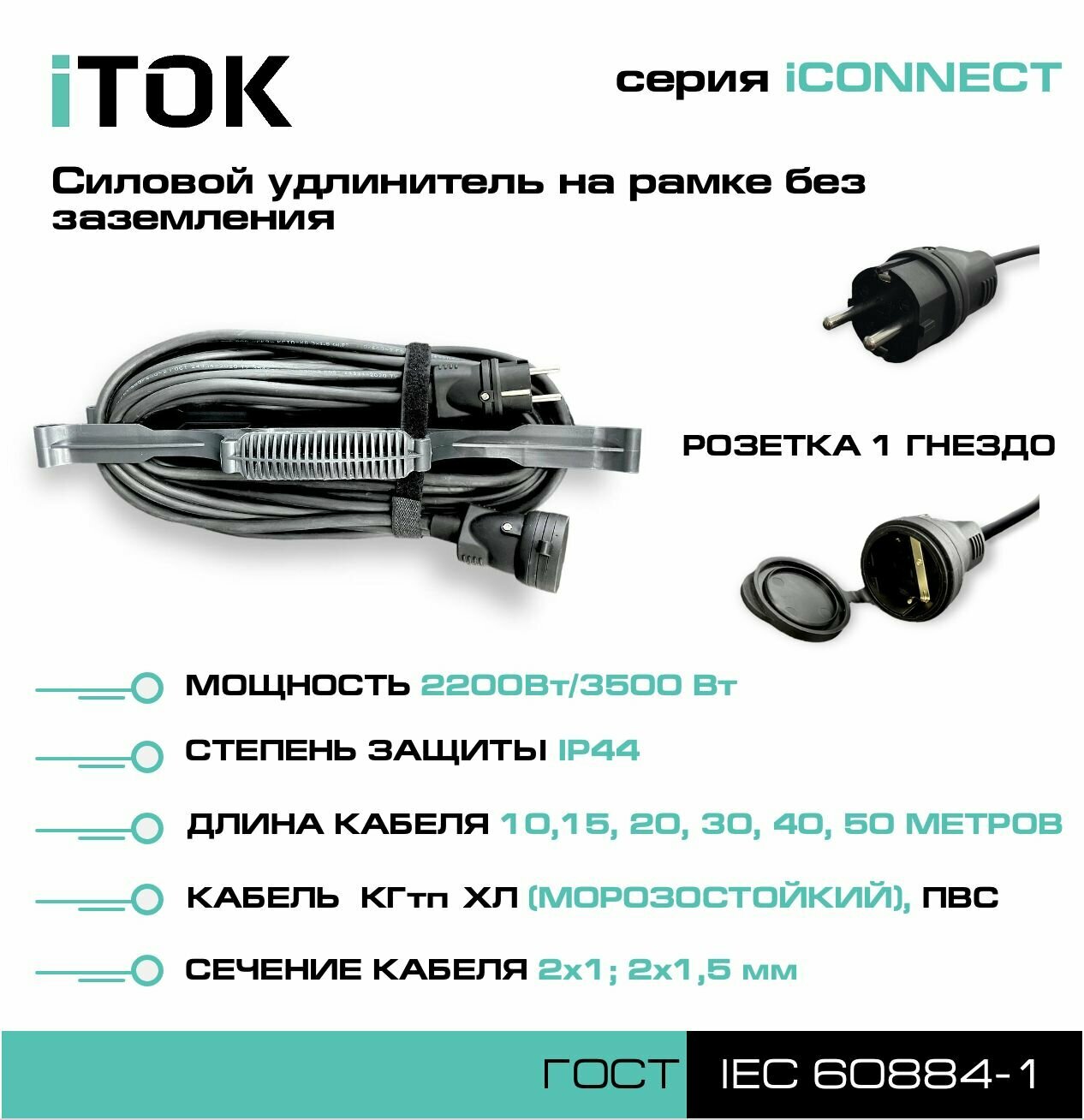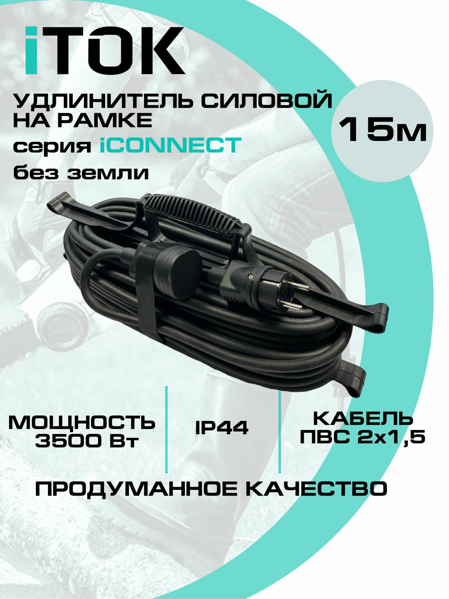 Удлинитель силовой уличный ПВС 2х1,5 мм 1 розетка IP44 15 м на рамке без земли серии iCONNECT iTOK: сравнение цен, характеристики, фото, актуальное наличие и цены.