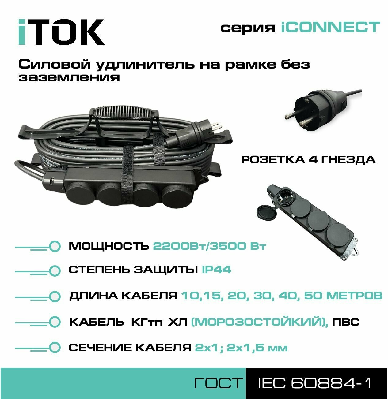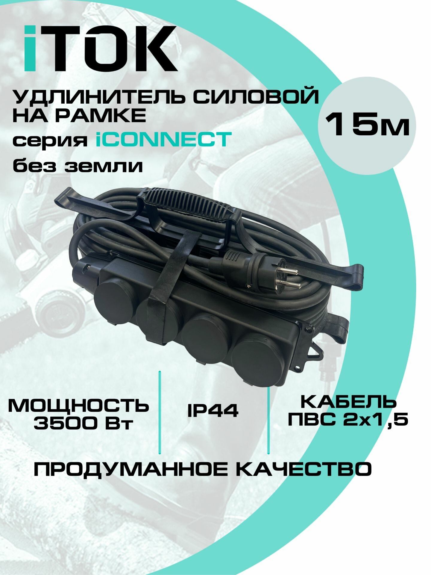 Удлинитель силовой уличный ПВС 2х1,5 мм 4 розетки IP44 15 м на рамке без земли серии iCONNECT iTOK: сравнение цен, характеристики, фото, актуальное наличие и цены.