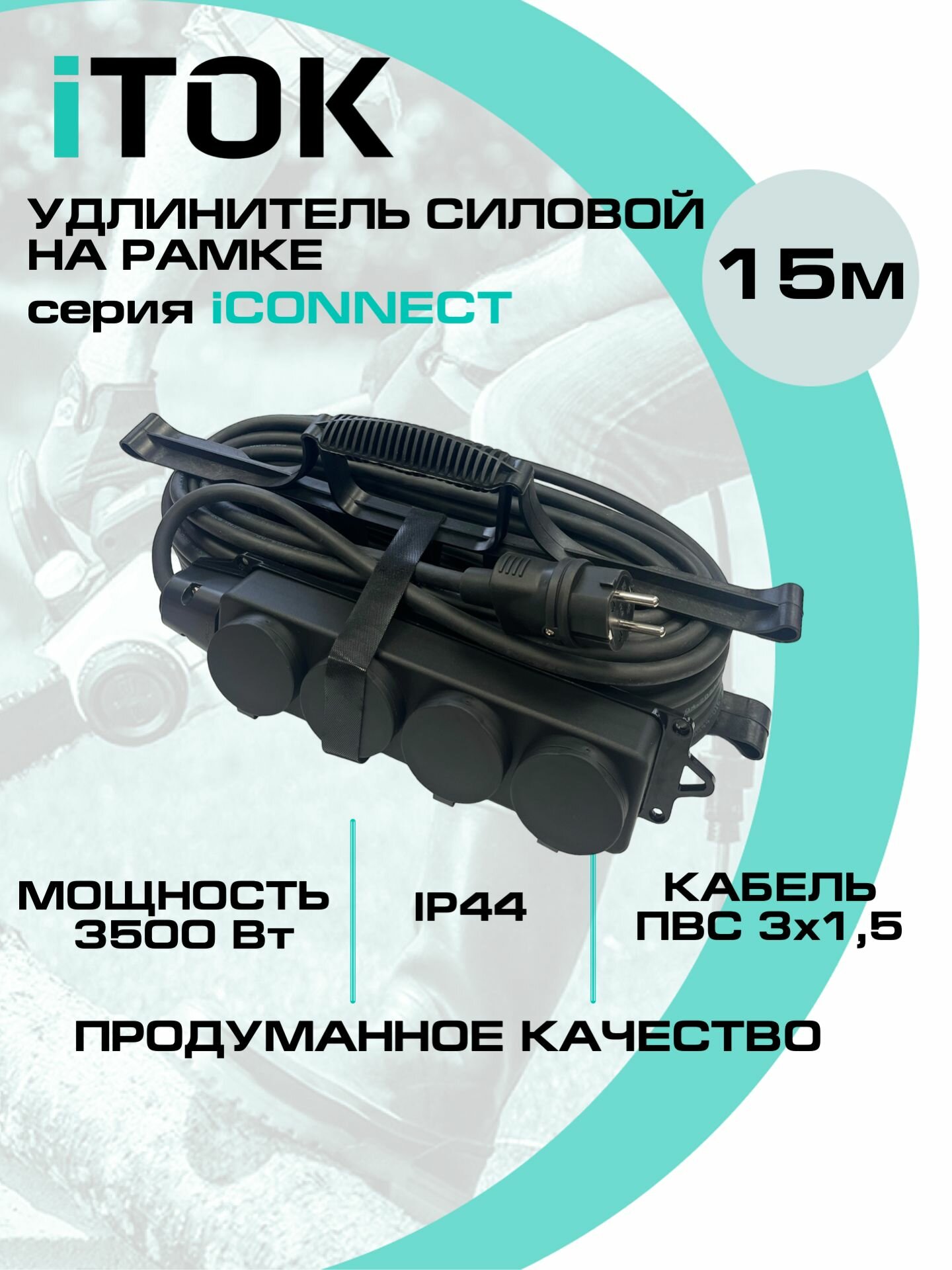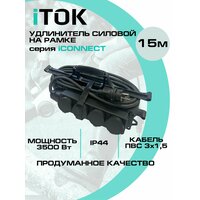 Удлинитель силовой уличный ПВС 3х1,5 мм 4 розетки IP44 15 м на рамке с заземлением серии iCONNECT iTOK: сравнение цен, характеристики, фото, актуальное наличие и цены.